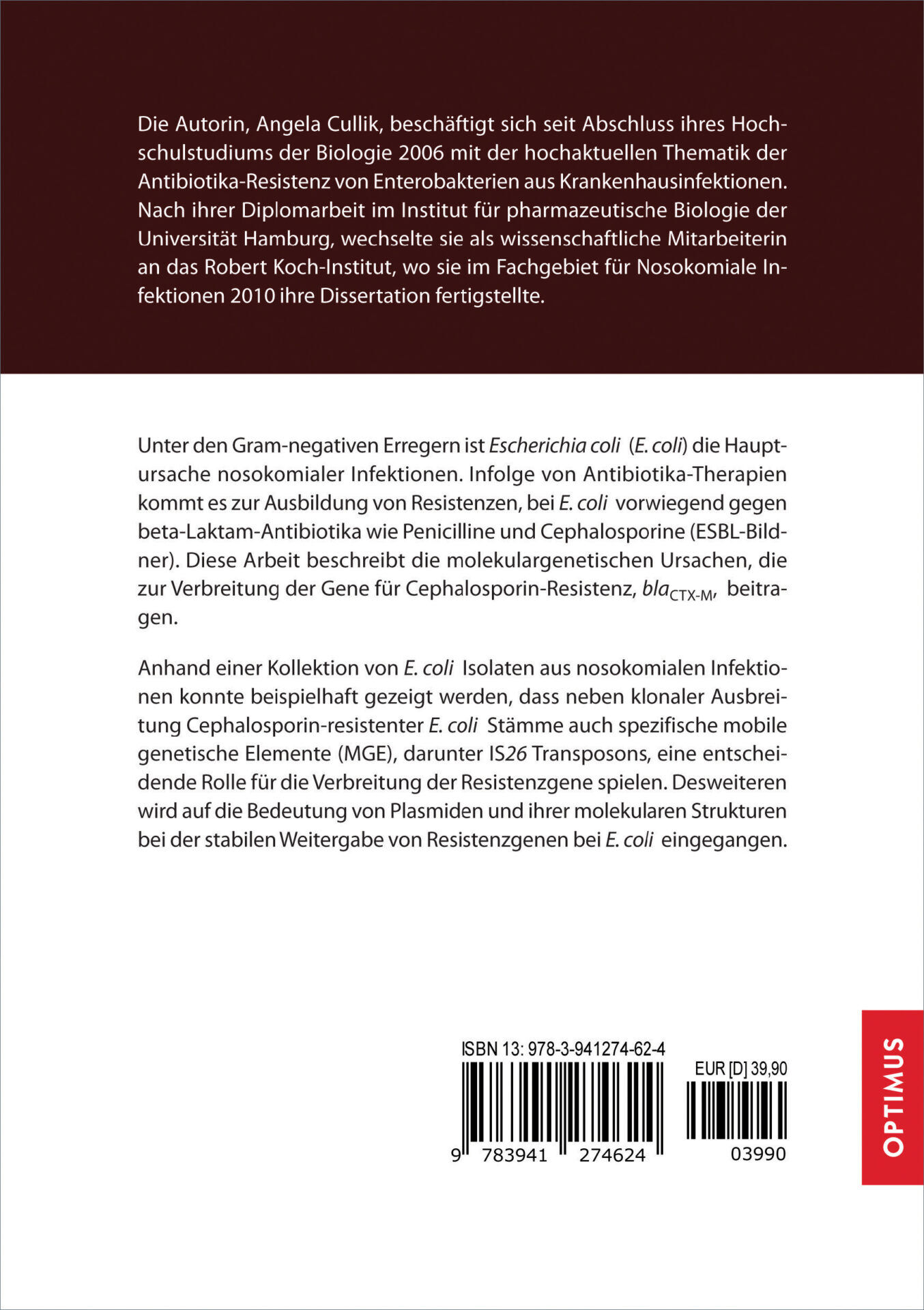 Diese Arbeit „Genetische Hintergründe für die Verbreitung der Extended-Spektrum Beta-Laktamase Gene blaCTX-M in Escherichia coli“ untersucht die molekulargenetischen Mechanismen, die zur Verbreitung des Cephalosporin-Resistenzgens blaCTX-M bei Escherichia coli aus nosokomialen Infektionen beitragen. Es konnte gezeigt werden, dass neben der klonalen Ausbreitung auch mobile genetische Elemente wie IS26-Transposons eine wichtige Rolle spielen. Zudem wird die Bedeutung von Plasmiden und deren molekularer Struktur für die stabile Weitergabe von Resistenzgenen bei E. coli erläutert.